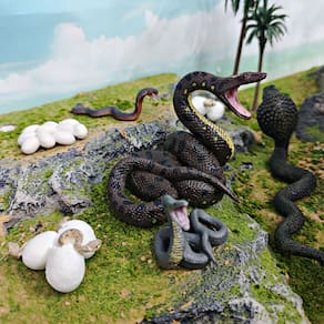 Conjunto de 8 peças de bonecos do ciclo de vida de cobra, estatuetas realistas de animais selvagens com cobra, píton, ovos de cobra, brinquedos educativos para crianças, decorações de ensino de ciências para sala de aula e casa Descrição da exibição: Material: PVC Tamanho: 1-15 cm Peso: 148 g Características: 🐍 Estágios realistas de crescimento de cobras — Inclui ovos de cobra, cobras em incubação, estatuetas juvenis e adultas de cobra e píton para mostrar o ciclo de vida completo do réptil. 🎨 Design detalhado — Cada estatueta é pintada à mão com cores e texturas realistas, ideais para as crianças reconhecerem e aprenderem sobre répteis. 🧠 Educacional e divertido — Ajuda as crianças a entender a biologia e o desenvolvimento animal, perfeito para projetos escolares de ciências e aprendizado prático. 👦 Seguro para crianças de 3 anos ou mais — Feito de material de PVC durável e não tóxico, resistente e seguro para bebês e crianças pequenas brincarem e explorarem. 🏠 Decorações versáteis — Ótimas para salas de aula de ciências, vitrines domésticas, festas temáticas na selva e decorações em miniatura de cenas da vida selvagem. O que vem na caixa: 8 x Snake Life Cycle Figures Set