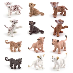 Conjunto de 12 peças de bonecos de filhotes de animais selvagens — Filhotes realistas de leão, tigre e leopardo em PVC — Estatuetas de animais de safári para crianças — Brinquedos educativos e decorações para casa ou escritório Descrição: Material: PVC Tamanho: 2-7 cm Peso: 138 g Características: Estatuetas de animais realistas: este conjunto inclui 12 filhotes detalhados e realistas, com leões, tigres e leopardos, projetados para imitar o mundo real vida selvagem. Construção durável em PVC: feitas de PVC seguro e não tóxico, essas figuras de animais em miniatura são feitas para durar e são ideais para brincadeiras e fins educacionais infantis. Educacional e divertido: uma ótima maneira para crianças de 3 anos ou mais aprenderem sobre animais selvagens, desenvolverem a imaginação e melhorarem as habilidades motoras finas enquanto brincam. Perfeitas para decorações: essas estatuetas de animais são uma adição encantadora a qualquer sala, berçário, sala de aula ou escritório com tema de safári. Ideal para colecionadores e brincadeiras: sejam utilizados para brincar ou como peça decorativa, esses filhotes de animais são perfeitos para jovens amantes e colecionadores de animais. O que vem na caixa: 12 x Conjunto de bonecos Wild Animal Cub
