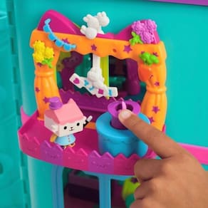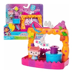 Descrição: Crie brincadeiras sem fim com os conjuntos de varanda para festa: Smoothie de frutas da Cakey Cat , Show de Talentos da Baby Box Cat e Vigia Sonhador do Pandy Paws (vendidos separadamente). Coloque cada boneco e móveis da casa de bonecas na varanda para uma celebração Cat-errific! Cada varanda pode ser fixada nas janelas externas da Casa de Bonecas da Gabby (Código 3063 | Vendida separadamente) e inclui uma figura e acessórios . O conjunto conta com uma caixinha surpresa. Abra a caixinha, assim como Gabby faz na série, para descobrir o acessório misterioso.