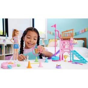 — As crianças podem usar toda a energia de seus cachorros com a boneca Stacie e este conjunto de brinquedos Puppy Obstacle Course.