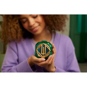 - O exterior compacto é todo verde com detalhes dourados e vem em uma embalagem premium perfeita para brincar ou exibir!