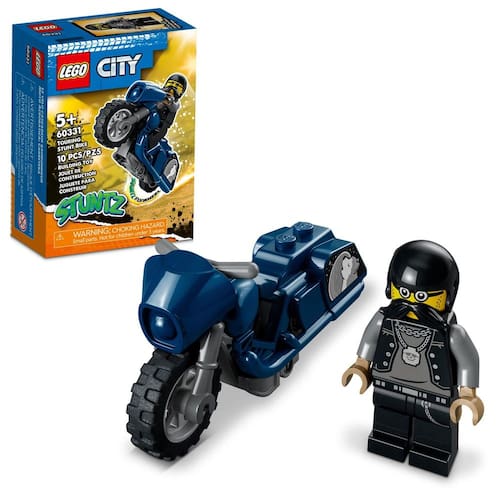 LEGO Conjunto de brinquedos de montar City Stuntz Touring Stunt Bike 60331; bicicleta movida a volante para meninos, meninas e crianças a partir de 5 anos (10 peças) - Motocicleta de acrobacias de brinquedo – Apresente crianças de 5 anos ou até o emocionante mundo de LEGO City Stuntz com este conjunto de brinquedo de bicicleta de acrobacias de volante, incluindo uma miniatura Stuntz - Conteúdo da embalagem: – Todas as crianças precisam construir uma bicicleta de acrobacias movida a volante e uma miniatura LEGO City Stuntz, o motociclista Lone Wolf - Ação real – As crianças empurram a bicicleta de acrobacias para ativar o volante, depois lançá-lo para diversão com rodas e manobras no ar - Um presente divertido – O conjunto de bicicleta de acrobacias LEGO City Touring (60331) pode ser dado como feriado, aniversário ou qualquer outro dia surpresa para crianças a partir de 5 anos que gostam de brinquedos de ação legais - Um brinquedo para levar junto – uma vez construída, a Touring Stunt Bike mede mais de 3,8 cm. 3,5 cm de altura, 6,3 cm. 7 cm de comprimento e menos de 2,54 cm. 2 cm de largura
