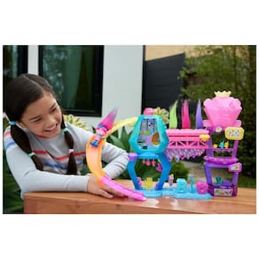 Diversão em Altura: Escorregador emocionante para aventuras sem fim. Lanchonete e Camarim: Para momentos criativos e de descanso. Lançador de Hair Pops: Surpreenda-se ao deslizar a pedra e ver os Hair Pops voarem pelos ares! Hair Pops Escondidos: Guarde-os no cabelo de pelúcia da Poppy e descubra acessórios escondidos ao abri-los. Palco Iluminado: Deixe a Queen Poppy brilhar com apresentações incríveis.