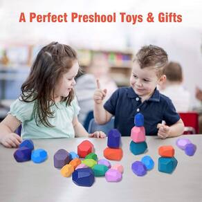 Descrição do produto Conteúdo da embalagem: conjunto de 36 blocos de madeira 1. Material: Os blocos de nivelamento de pedra são feitos de madeira de pinho de alta qualidade, que é l, segura, saudável e não tóxica. Design exclusivo em forma de pedra: essa beleza se inspira na arte de empilhar pedras macias e é apenas um dos brinquedos de empilhamento mais fofos já feitos de algodão2. Blocos de construção de pedra: Os blocos de construção são uma maneira maravilhosa e interessante de estimular a criatividade das crianças, mas também uma ótima maneira de as crianças explorarem formas e cores3. Jogo educativo: este brinquedo ajuda os bebês a aumentar sua curiosidade e os apresenta à primeira fase da resolução de problemas, baseada na resolução de problemas4. Praticidade: cada peça é selecionada, lixada e polida para tornar a superfície lisa e segura o suficiente para crianças e adultos. Este adorável brinquedo empilhável também pode ser como enfeite