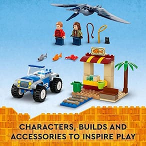 Os jovens podem aprender a construir e encenar histórias emocionantes do Mundo Jurássico com este conjunto de brinquedos Pteranodon Chase (76943) para maiores de 4 anos. Possui um carrinho de brinquedo, barraca de peixe e modelos de doca. Uma ideia incrível de presente para crianças amantes de dinossauros, o conjunto também inclui um boneco de brinquedo Pteranodon posável e 2 minifiguras com vara de pescar e elementos acessórios de laço para inspirar brincadeiras criativas. As instruções ilustradas simples são perfeitas para crianças que estão apenas aprendendo a ler. E confira o aplicativo LEGO Building Instructions para obter instruções digitais, além de ampliar e girar as ferramentas de visualização para tornar a construção dos modelos ainda mais divertida. Os brinquedos de construção LEGO 4+ apresentam às crianças um amplo universo de seus filmes favoritos, personagens de TV e heróis do dia a dia. Eles são especialmente projetados com Starter Bricks para que até mesmo construtores iniciantes possam construir veículos, edifícios e muito mais com apenas um pouco de ajuda de um irmão mais velho ou adulto.