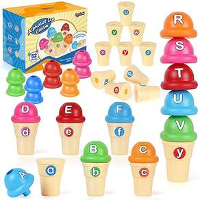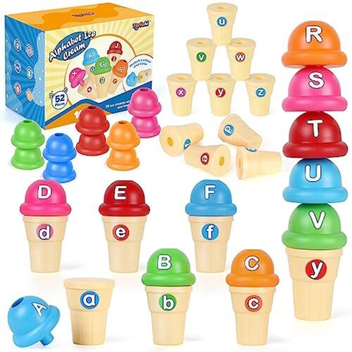 Conjunto de brinquedos Torlam Alphabet Learning Ice Cream, brinquedo didático para crianças com reconhecimento de letras ABC que combina 26 letras, jardim de infância, sala de aula, pré-escola, atividades de aprendizagem indispensáveis para crianças, 52 peças