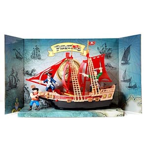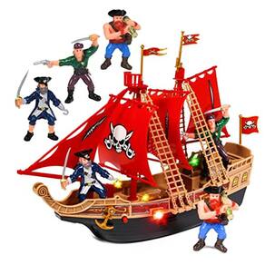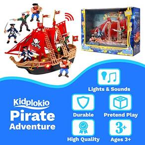 AHOY MATIES. Os pequenos podem caçar tesouros e explorar os sete mares com este brinquedo de playset de navio pirata pronto para a aventura de Kidplokio. Com luzes divertidas, sons interativos altos, três figuras de ação piratas para brincar e um navio pirata de 12 polegadas para capitanear, as crianças terão uma explosão navegando, saqueando, comandando navios inimigos e muito mais, enquanto navegam pelas profundezas salgadas. Com luzes piscando selvagens e efeitos sonoros altos, as crianças vão adorar como esses recursos tornam o tempo de jogo mais interativo, divertido e realista. Com o simples apertar de um botão na parte da frente do navio pirata, sons emocionantes rugem do convés, juntamente com muitas luzes piscando. O brinquedo do navio pirata vem com três figuras de ação pirata de plástico perfeitas para tripular o navio pirata - um capitão e dois piratas terão pequenas mãos ocupadas com muita aventura de faz de conta. As possibilidades imaginativas de brincar de faz de conta são infinitas com este navio pirata de brinquedo. Buscando ouro espanhol afundado ou pego na guerra de piratas de alto mar, as crianças vão adorar criar histórias e usar sua imaginação para horas de emocionante tempo de brincadeira de navios piratas. Além disso, este playset de navio pirata é ótimo para crianças e habilidades motoras finas e grossas de crianças pequenas, pois brincam com o grande navio e manobram as figuras de ações menores. Nenhuma montagem necessária. O brinquedo Pirate Ship Playset opera com baterias de (3) 1,5 volts (incluídas). Aviso: Perigo de asfixia, peças pequenasIdades recomendadas: 3+