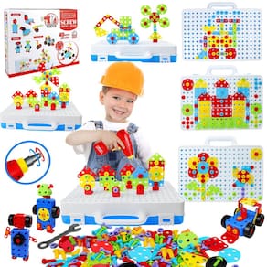 aotipol Conjunto de brinquedos de broca elétrica faça você mesmo, brinquedo STEM para educação infantil, broca elétrica. Este brinquedo educativo STEM oferece várias maneiras de brincar. Pode exercitar a imaginação de seus filhos para criar mais ideias. Deixe sua brincadeira ser desafiadora e interessante! Melhore a coordenação motora e as habilidades práticas! Conjunto de brocas com vários acessórios. O design elegante da furadeira elétrica não tem espinhos e o bebê é fácil de segurar na mão, seguro e confiável. 1 furadeira elétrica reversível, 2 cabeças de broca, 1 chave de fenda, 40 porcas de plástico, 10 blocos adaptadores, 102 parafusos, 64 blocos de construção, 1 estojo de armazenamento, 1 manual de instruções (sem garantia de versão em português). Dicas quentes: existe o risco de comer acidentalmente devido às pequenas peças de parafuso dentro. Não adequado para crianças menores de 3 anos. Para segurança no transporte, a bateria da furadeira elétrica não está incluída, ela precisa de 2 pilhas AA. Para evitar o perigo de asfixia, supervisione seu filho para brincar com este brinquedo. Alta qualidade e segurança, todos feitos de plástico ABS durável de alta qualidade e pintados com tinta vívida não tóxica. Os materiais seguros não prejudicam as crianças. Lavável e não desbota. Os acessórios do conjunto de brocas são laváveis e esterilizáveis. Não há preocupação com desbotamento. Superfície e borda lisas. Todas as peças são lisas, sem rebarbas e sem bordas afiadas. É seguro para as mãos das crianças para que elas possam brincar sem preocupações. brinquedos de montar para crianças de 4 a 8 anos - Brinquedos de construção de 232 peças para crianças de 4 a 8 anos: o conjunto de brocas infantis inclui peças coloridas (porcas grandes, parafusos, etc.), uma furadeira elétrica com 2 brocas intercambiáveis diferentes, 1 chave inglesa, 1 chave de fenda, um livro de instruções com vários padrões e um estojo de armazenamento de design portátil que é prático para manter tudo junto. A capa também atua como uma placa para perfuração. Fácil de transportar para qualquer lugar! ! - Design e perfuração: existem infinitas combinações de edifícios 1D 2D e 3D! Melhore a imaginação e a criatividade de seus filhos desafiando-os a construir seus próprios carros, animais, robôs e qualquer coisa que eles possam imaginar. Também fornecemos mais ferramentas do que outros conjuntos: uma chave inglesa, uma chave de fenda manual e uma chave de fenda elétrica para que mais crianças possam brincar ao mesmo tempo. - Todos os níveis adoram: incluímos um manual colorido com 42 padrões e desafios de fácil a difícil. Os pequenos adoram as ferramentas que perfuram os parafusos na base. As crianças maiores adoram a complexidade das construções. Nossos blocos de construção educacionais também crescem com seu filho. - Suporta educação STEM: perfeito para dar ao seu pequeno engenheiro um salto nas habilidades STEM! Cada conjunto de brocas e parafusos para crianças maximiza sua consciência espacial, resolução de problemas lógicos, visualização e planejamento, habilidades motoras finas e muitas outras habilidades cognitivas essenciais brincando com brinquedos STEM! Alcance o desenvolvimento STEM com construção básica de engenharia, brincadeiras de construção e instruções iniciais de matemática. - Divertido e seguro primeiro: a segurança das crianças é fundamental para nós. Este conjunto de ferragens é feito de material plástico ABS que é completamente testado de forma independente em laboratórios de terceiros, não tóxico, livre de BPA, insípido. Se você acredita que seus filhos devem gastar mais tempo em jogos DIY em vez de jogos de computador ou iPad, este brinquedo é a escolha ideal para você. Brinquedos STEM para crianças de 2 a 4, 5, 6, 7 e 8 anos. É uma boa ideia de presente para aniversário, Natal, Ação de Graças ou qualquer outra ocasião adequada.