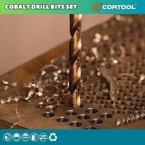 CORTOOL Brocas de cobalto de 9,5 mm (6 peças), conjunto de brocas de metal M35 HSS para metal duro, aço inoxidável, ferro, cobre, alumínio, latão, plástico e madeira ?6 peças de brocas de cobalto de 9,5 cm?6 peças - diâmetro 9,53 mm) x 9,3 cm (comprimento da flauta: 9 Brocas de metal de 3 mm, comprimento total de 128 mm. Esta broca serve para a maioria das furadeiras elétricas atualmente no mercado. ?Aço de alta velocidade cobalto M35?Conjunto de brocas de aço de alta velocidade M35 de grau industrial, muito mais duro do que o HSS utilizado em outros conjuntos de brocas semelhantes. Estas brocas contêm 5% de cobalto, o que aumenta a resistência ao desgaste e a durabilidade. ?Processo totalmente moído e ponto de divisão de 135°?O design de ranhura espiral totalmente moído limpa partículas rapidamente, diminui o atrito e o calor para um desempenho de perfuração mais rápido e mais frio. O ponto dividido de 135° com haste reta evita caminhar e torna a perfuração precisa e rápida. Não é necessário perfurador central. ?Múltiplas aplicações?Perfeitamente adequado para cortar metais duros como aço inoxidável, aço, chapa metálica e ferro fundido, bem como plástico, liga de alumínio, madeira e outros metais mais macios. Preste atenção à velocidade, pressão e controle de calor durante a perfuração. - ?6 peças de brocas de cobalto de 9,5 cm?6 peças - brocas de metal de 128 mm de comprimento total. Esta broca serve para a maioria das furadeiras elétricas atualmente no mercado. - ?Aço de alta velocidade cobalto M35?Conjunto de brocas de aço de alta velocidade M35 de grau industrial, muito mais duro do que o HSS utilizado em outros conjuntos de brocas semelhantes. Estas brocas contêm 5% de cobalto, o que aumenta a resistência ao desgaste e a durabilidade. - ?Processo totalmente moído e ponto de divisão de 135°?O design de ranhura espiral totalmente moído limpa partículas rapidamente, diminui o atrito e o calor para um desempenho de perfuração mais rápido e mais frio. O ponto dividido de 135° com haste reta evita caminhar e torna a perfuração precisa e rápida. Não é necessário perfurador central. - ?Múltiplas aplicações?Perfeitamente adequado para cortar metais duros como aço inoxidável, aço, chapa metálica e ferro fundido, bem como plástico, liga de alumínio, madeira e outros metais mais macios. Preste atenção à velocidade, pressão e controle de calor durante a perfuração.