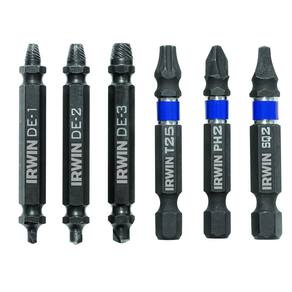 Brocas de inserção de extrator de parafuso de dupla extremidade SCREW GRIP da série IMPACT Performance da IRWIN Tools, conjunto de 6 peças (1876225)