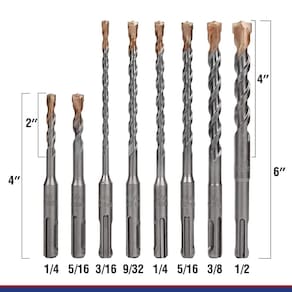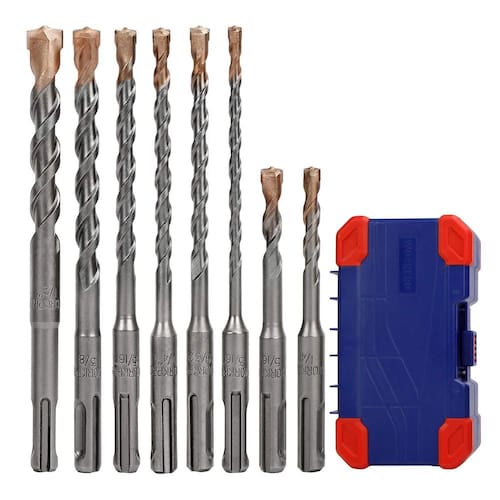 A broca de martelo rotativo SDS-Plus Workpro de 8 peças realiza perfuração precisa em concreto reforçado. Uma transferência de energia reduzida de vibração do martelo rotativo para a cabeça de carboneto completa é fornecida pelo design de 2 + 2 flautas, que é feito de aço de alta liga e criado usando tecnologia de endurecimento otimizada. Isso oferece a estabilidade necessária para resultados exatos. A broca destina-se ao uso em alvenaria, concreto e concreto reforçado. É compatível com martelos rotativos com suportes SDS plus, como BOSCH, Dewalt, MAKITA, Milwaukee, etc. - 8 peças de brocas SDS-PLUS – O conjunto inclui: 1/4 X 4", 5/16 X 4", 3/16 X 6", 9/32 X 6", 1/4 X 6", 5/16 X 6", 3/8 X 15,2 cm, 5/16 X 6", 3/8 X 15,2 1/2/Meses x 15 cm. - Ponta de carbono – cabeças de broca de coroa importadas de luxo, com ponta de carboneto mais estáveis, mais duras, mais duráveis, com vida útil extra longa. A broca SDS PLUS fará furos no concreto de forma mais rápida e fácil. - Design especial de canela – o design de flauta em forma de U mais amplo e profundo limpa os detritos rapidamente para uma perfuração mais fácil e eficiente, tempo de trabalho por mais tempo. - Ranhuras em SDS mais haste – a haste tem dois tipos de ranhuras (total de quatro). As ranhuras menores fixam a broca no mandril. Os sulcos maiores permitem que as brocas escorreguem no mandril durante o trabalho, melhorando o torque de perfuração e martelando a energia. - Multiuso – o conjunto de brocas de concreto é totalmente compatível com todas as brocas de martelo rotativo SDS-Plus, como Bosch, Dewalt, Makita, Milwaukee, etc. Ideal para fazer furos em concreto, tijolo, pedra e alvenaria.
