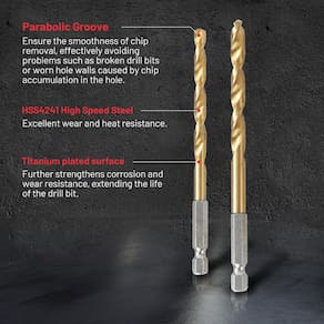 Compatível com chaves de fenda elétricas, chaves de impacto e outras ferramentas que podem usar hastes hexagonais de 6 mm. Pode ser utilizado para perfurar aço, cobre, alumínio, liga de zinco, ferro fundido, madeira, placa de fibra, placa de plástico, especialmente adequado para perfuração de placas finas. - ?Tamanhos completos?O conjunto de brocas de impacto inclui os 15 tamanhos mais utilizados (2 peças x 1/40.6 cm, 5/162.6 cm, 3/81.3 cm, 7/162.6 cm, 2 peças x 1/20.3 cm, 9/162.6 cm, 5/81.3 cm, 2 peças x 3/40.6 cm. cm, 7/81 3 cm, 1/10.2 cm, 5/40.6 cm, 3/20.3 cm), e também vem com uma caixa de armazenamento de plástico grosso, que pode atender perfeitamente às suas necessidades de trabalho. - ?Design de ângulo superior de 135°?Em comparação com a broca de torção de ângulo superior de 118°, o design de ângulo superior de 135° é mais propício à quebra de cavacos, o que reduz os problemas causados pelo emaranhamento excessivo de cavacos na broca ou furo e também evita efetivamente que a broca oscile e desvie, o que torna a broca cortada mais suavemente e melhora a precisão da perfuração y. - ?Ranhura parabólica?O sulco parabólico garante a suavidade da remoção de cavacos, evitando efetivamente o acúmulo de lascas no orifício e levando a problemas como brocas quebradas ou desgaste da parede do furo, etc. ; a parte traseira da ranhura parabólica tem uma grande lacuna, de modo que o refrigerante lubrificante possa penetrar na broca para resfriar totalmente e lubrificar a aresta de corte, reduzir o desgaste e o calor e melhorar a durabilidade e a eficiência da usinagem. - ?Revestimento de titânio HSS?As brocas HSS4241 têm excelente resistência ao desgaste e ao calor e podem lidar facilmente com ambientes de alta temperatura, o que é muito adequado para operações de perfuração de alta intensidade. O revestimento de titânio na superfície reduz o atrito durante o processo de perfuração e fortalece ainda mais a resistência à corrosão e ao desgaste, prolongando a vida útil da broca. O revestimento de titânio também inibe a geração de calor durante o corte, o que melhora significativamente a eficiência da usinagem. - ?Modelos compatíveis e materiais aplicáveis?Compatível com chaves de fenda elétricas, chaves de impacto e outras ferramentas que podem usar hastes hexagonais de 6 mm. Pode ser utilizado para perfurar aço, cobre, alumínio, liga de zinco, ferro fundido, madeira, placa de fibra, placa de plástico, especialmente adequado para perfuração de placas finas.