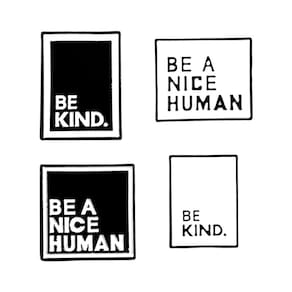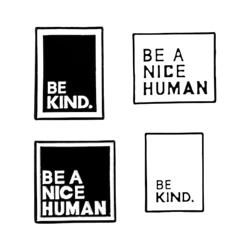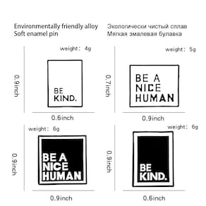 Material: liga Tamanho: 1,5 x 2,3 cm Peso: 21 g Quantidade: você receberá todas as peças em quantidade igual à primeira foto principal MostrarConjunto de 4 broches inspiradores: inclui quatro alfinetes exclusivos com mensagens como “Seja gentil” e “Seja um bom humano”, promovendo gentileza e positividade. Design elegante e minimalista: o estilo geométrico em preto e branco oferece uma aparência moderna e limpa que complementa qualquer roupa. Material de liga durável: feitos de liga resistente, esses pinos são feitos para durar e manter seu design e cor nítidos. Perfeitos para uso diário: ideais para jaquetas, blusas, bolsas ou cachecóis, esses alfinetes dão um toque atencioso a looks casuais ou profissionais. Leve e confortável: pesando apenas 21 g, esses pinos são confortáveis de usar o dia todo sem aumentar o volume.