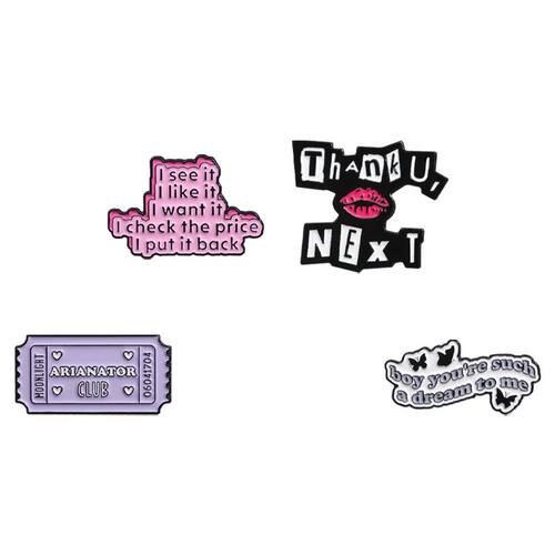 Material: Tamanho da liga: 3x2 cm Peso: 18 g Quantidade: você receberá todas as peças em quantidade igual à primeira imagem principal. Mostre a liga durável com acabamento em esmalte — Feitos de liga resistente e revestidos com esmalte colorido, esses broches são leves, lisos e duradouros. Creative Quote Designs — Apresenta slogans divertidos, incluindo “I See It I Like It I Want It”, “Thank U Next”, “Boy You're Such a Dream” e um emblema “Moonlight Ticket” para uma declaração elegante. Uso versátil — Funciona como alfinetes de blusa, broche, alfinetes de lapela ou crachás, perfeitos para decorar jaquetas, camisas, chapéus, mochilas ou sacolas. Tamanho compacto e leve — Cada pino mede cerca de 3x2 cm, pesando no total 18 g, o que os torna fáceis de usar e transportar sem grandes quantidades. Perfeito para roupas e eventos — Ideal para roupas casuais, festas, shows ou reuniões temáticas, adicionando humor, personalidade e moda ao seu visual.