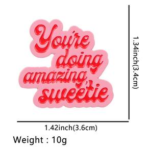 Material: Liga Tamanho: 3 x 2,9 cm Peso: 18 g Quantidade: você receberá todas as peças em quantidade igual à primeira foto principal. ShowQuote Designs — Inclui um broche rosa “Você está fazendo uma querida incrível” e um broche vermelho “Tudo o que você precisa é amor”, adicionando positividade e estilo à sua roupa. Material de liga — Feito de liga resistente com acabamento esmaltado, garantindo cores brilhantes, textura suave e resistência ao desbotamento ou ferrugem. Uso de acessórios — Funciona como broche, alfinete de blusa ou alfinete de lapela, perfeito para decorar jaquetas, suéteres, mochilas, chapéus e uso diário. E leve — Cada alfinete mede cerca de 3x2,9 cm, com um peso total de 18 g, o que os torna fáceis de usar sem danificar os tecidos. Para colecionadores e estilistas diários — Um divertido conjunto de crachás para colecionadores de broches, estudantes e amantes da moda que gostam de acessórios motivacionais e expressivos.