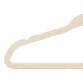 Com um design ultra fino que otimiza o espaço no guarda-roupa em até 50%, cada cabide é revestido com um veludo de alta qualidade na cor creme, que oferece uma textura antideslizante impedindo que peças de tecidos delicados ou com alças finas escorreguem. Além da funcionalidade, o conjunto apresenta um visual sofisticado e clean, mantendo o armário visualmente padronizado e elegante.