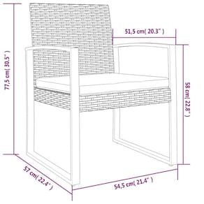 - Cadeira de jantar: - - Cor: preto e antracite- - Material: PP (polipropileno) com aparência de vime, aço revestido a pó- - Dimensões: 21,5 “x 22,4" x 30,5” (L x P x A) - - Tamanho do assento: 18,7" x 20,7" (L x P) - Altura do assento em relação ao solo: 13,4"- - Tamanho do encosto: 18,7" x 16,9" (L x P) - - Capacidade máxima de carga (cada assento): 242,5 libras- - Almofada: - - Cor da almofada: branco creme- - Material: tecido (100% poliéster) - - Material de enchimento: fibra- - Dimensões: 18,9" x 20,7" x 2" (L x P x T) - - Montagem necessária: Sim- - A entrega contém: - - 2 x cadeira de jantar- - 2 x Almofada de assento- - Proposta 65 da Califórnia