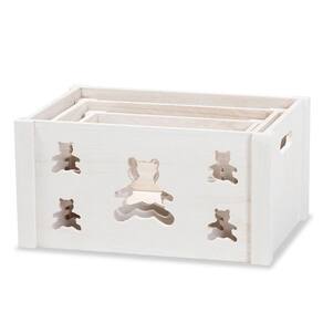 Perfeito para brinquedos, livros e muito mais, o conjunto de caixas Sagen é uma adição maravilhosa a qualquer sala de jogos. Características O conjunto moderno inclui três (3) caixas de vários tamanhos. Construído em paulownia e madeira compensada. Alças recortadas em animais. Design estável Material: madeira de paulownia, madeira compensada Cor: branco Dimensões da caixa grande: 7,90 polegadas de altura x 15,70 polegadas de largura x 11,80 polegadas de profundidade Dimensões: 6,70" de altura x 13,80" de largura x 9,80" de profundidade Dimensões da caixa pequena: 5,50" de altura x 11,80" de largura x 7,90" de profundidade Montagem necessária: Não fabricada na China - Organize a vida de seu filho com o fantástico capacidades do conjunto de caixas Sagen. Feito na China, este conjunto inclui três caixas feitas de madeira resistente. Cada caixa apresenta um tamanho único, dependendo de suas necessidades, enquanto os recortes de animais dão uma sensação divertida e divertida. O Sagen chegará totalmente montado e utilizará alças recortadas para facilitar o transporte.