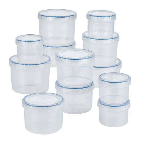 LOCK & LOCK Easy Essentials Conjunto de caixas de armazenamento de alimentos/tampas herméticas/livre de BPA/seguro para lava-louças, 24 peças - transparente - ARMAZENAMENTO INTELIGENTE: O conjunto de recipientes de armazenamento Easy Essentials oferece armazenamento fresco e empilhável com tampas de vedação fáceis de abrir e fechar - Sem bagunça, permanece fresco: o sistema de vedação aprimorado é hermético para manter os alimentos frescos por mais tempo e à prova de vazamentos para evitar gotejamentos e derramamentos indesejados - Livre de BPA: os recipientes para alimentos são livres de BPA para armazenamento de alimentos saudáveis e felizes - Recipientes convenientes: seguro para micro-ondas para reaquecimento conveniente e lavável na lava-louças para facilitar a limpeza - Versátil: o conjunto de seis recipientes de armazenamento oferece uma solução de armazenamento conveniente e completa para a geladeira, freezer, despensa e em movimento