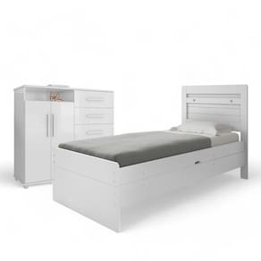 Acompanha Colchão: Com Colchão | Altura do Produto com Embalagem (cm): 114 | Capacidade de Peso (Buffet): 5 | Classificação da Cama/Cabeceira: Solteiro | Color: Branco | Cômodo Indicado: Quartos | Comnto Produto com Embalagem (cm): 195 | Descrição do Tamanho: Padrão | Fabricante: Mobiliar Home Shop | Height: 114 | Largura Produto com Embalagem (cm): 136 | Length: 195 | Material para Filtro: MDF/MDP | MAX_WEIGHT_SUPPORTED_BY_BED: 5 | Modelo: Conjunto Larissa e Helena | Modelo de Cama: Simples | Num. Volumes: 4 | Peso Produto Com Embalagem (Kg): 109.65 | Produto: Conjunto Cama e Cômoda | REQUIRES_ASSEMBLY: Sim | Tipo de Cama/Cabeceira: Padrão | Tonalidade (Leroy): Branco | Weight: 109.65 | Width: 136