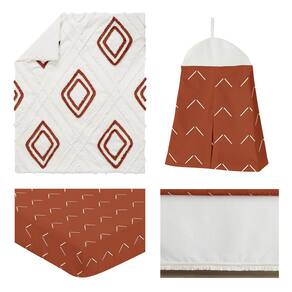 A coleção de cama de bebê com tufos de diamante laranja da Sweet Jojo Designs criará um ambiente boho moderno para o seu berçário. Este conjunto de cama de berço de gênero neutro apresenta um design geométrico exclusivo com acabamentos tufados. A paleta de cores quentes de ferrugem laranja queimada e marfim macio dará um visual divertido e eclético ao seu berçário. Este conjunto Sweet Jojo Designs serve para todos os berços padrão e camas infantis. A Sweet Jojo Designs cria vários acessórios de sala de coordenação para todos os conjuntos de cama de seus filhos, incluindo decoração de parede, cestos, abajures e tratamentos de janela. - O conjunto de 4 peças inclui: cobertor de berço, lençol com elástico, saia de berço e empilhador de fraldas - Cobertor de berço: 114 cm. x 91,4 cm. Lençol com elástico: 132 cm. 71 cm. 20 cm. Bolso, saia de berço: 132 cm. 71 cm. 38 cm. Gota, empilhador de fraldas: 38 cm. 51 cm. 15 cm. - Este conjunto apresenta um design geométrico exclusivo com acabamentos tufados - Este conjunto é feito de algodão e tecidos de microfibra escovada e pode ser lavado na máquina. Secar em temperatura baixa - Sweet Jojo Designs oferece acessórios combinando, como lençóis de berço, trocadores, decoração de parede, tratamentos de janela, celulares musicais, opções de armazenamento e muito mais. Este design também está disponível em conjuntos de cama de berço, crianças, solteiro e queen.