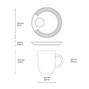 4 Canecas com Pires - 330 ml em 10,5 cm de altura e 8,3 cm de diâmetro