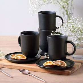 Conjunto de Canecas com Pires 04 Peças Linhas Preto Matte Porto Brasil - Informações