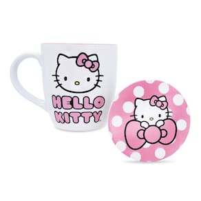 - SELO DE APROVAÇÃO DA HELLO KITTY: Precisa de um pouco mais de atenção hoje? Esta caneca e porta-copos de cerâmica sem BPA são feitas para todos os momentos mais encantadores da vida. Fáceis de manter, eles são adequados tanto para lava-louças quanto para micro-ondas.