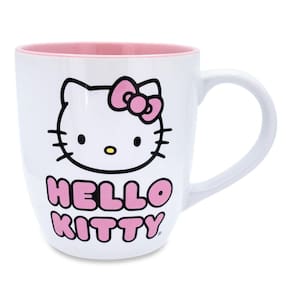 - EM CASO DE DÚVIDA, PENSE EM ROSA: A Hello Kitty parece atemporal nesta linda caneca branca com um interior rosa suave. A montanha-russa de bolinhas rosa e branca que combina garante que todas as suas mesas permaneçam super fofas e sem manchas.