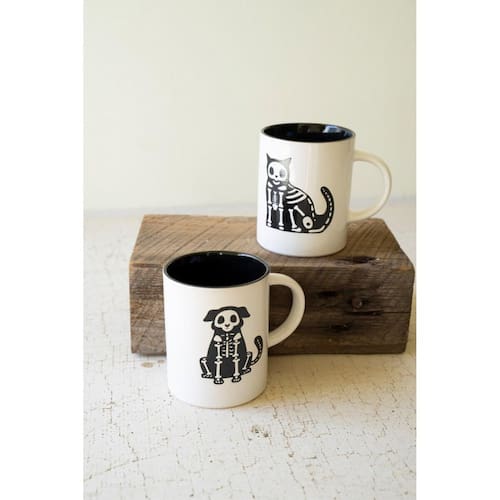 CONJUNTO DE DUAS CANECAS DE CERÂMICA CANECAS DE HALLOWEEN PARA CÃES E GATOS - 17 ONÇAS. /P >