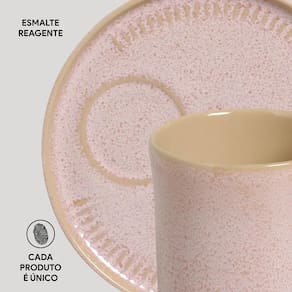 Design único e autêntico Com um design exclusivo, o conjunto destaca-se pelas variações de cores, formas e relevos, efeitos naturais do processo artesanal que reforçam sua originalidade. As canecas com capacidade para 330ml na delicada cor Litch Rosa Claro aliam praticidade e estilo, combinando perfeitamente com diferentes estilos de decoração e trazendo beleza e autenticidade para o dia a dia.