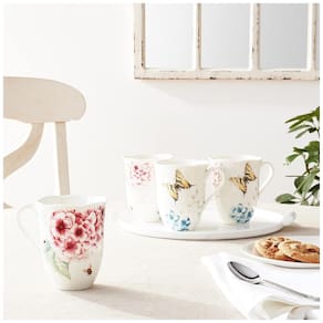 Adicione um toque encantador à sua coleção com o conjunto de canecas de cerâmica branca Butterfly Meadow Hydrangea. Decoradas com lindas hortênsias, essas canecas trazem o encanto do design clássico da famosa linha Butterfly Meadow, que inclui delicadas borboletas, libélulas e abelhas.