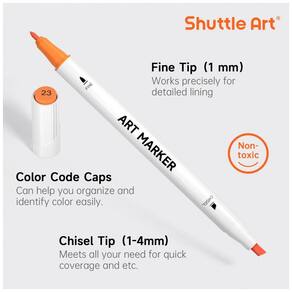 100 CORES 1 Liquidificador: Os marcadores permanentes à base de álcool Shuttle Art Dual Tip contêm 100 marcadores de cores vibrantes que resistem ao desbotamento com o tempo, contém 1 liquidificador incolor e 1 estojo de zenamento Nosso estojo preto com zíper é perfeito para zenamento e também para viagens. PONTA DUPLA: Os marcadores Shuttle Art têm uma ponta larga de para cobertura rápida e uma ponta pontiaguda de para detalhes. Nossos marcadores são classificados para 300 metros de uso contínuo, o que fornece uma grande quantidade de tinta por marcador. TINTA FÁCIL DE MISTURAR E EM FORMA DE CÍRCULO: Os marcadores de ponta dupla Shuttle Art se misturam e se sobrepõem bem sem deixar marcas e secando rapidamente. Misturar cores é muito fácil, colocando uma cor única sobre outra, criando uma paleta de cores ilimitada. O cano em forma de círculo pode ser deslizado com facilidade e conforto. E também possui saliências na tampa para evitar que os marcadores rolem em superfícies lisas. CUIDADOS: O conjunto de marcadores não é tóxico e não contém ácido, é para crianças e estudantes, em conformidade com ASTM D4236. Para evitar o sangramento da tinta durante o uso, a ponta não deve permanecer muito tempo no papel. Os marcadores precisam ser escritos em um papel de marca específico para que não vazem para a próxima camada. Para evitar que o marcador seque e vaze tinta, recapitule e mantenha o marcador na horizontal após o uso Marca: Não Informado