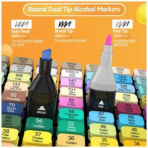 MARCADORES DE PONTA DUPLA Conjunto de marcadores de arte Banral 120 cores, cinzel largo aprox. 2 e pontas de ponta fina aprox. para realce e sublinhado precisos. Permitindo escrever em linhas finas e grossas, proporcionando grande versatilidade e mergulhando na arte. NOTA: Por serem marcadores à base de álcool como todos os outros marcadores de marca, eles sangrarão em papel colorido normal, exceto papel muito grosso, papel marcador.