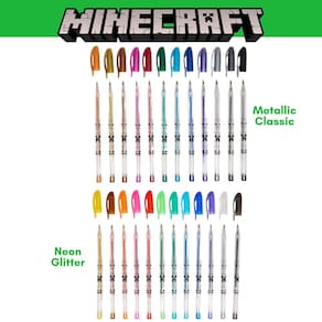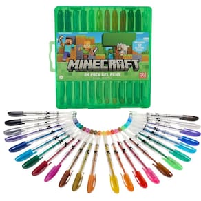 O conjunto de canetas de gel Minecraft para crianças é um pacote com 24 canetas de gel vibrantes que inclui 12 canetas de gel com glitter e 12 canetas de gel regulares e metálicas, todas em cores arco-íris. Cada caneta possui uma tampa removível e vem organizada em uma caixa de plástico verde durável com fechos de pressão e compartimentos individuais, tornando-a perfeita para facilitar o armazenamento e viagens. A tinta suave e vívida é ideal para colorir, desenhar e escrever em vários papéis, blocos de esboço e livros de colorir, tornando-a uma ótima escolha para crianças que amam artes e artesanato. Este conjunto é um excelente presente para fãs de Minecraft a partir de 3 anos, perfeito para aniversários, volta às aulas ou como um divertido recheio de meias. - Canetas de gel de gel e brilho – cada conjunto vem com 12 canetas de gel coloridas com glitter e 12 canetas de gel regulares e metálicas com tampas removíveis, todas em cores arco-íris. Vem em uma capa de plástico verde durável com fechos de pressão e compartimentos para cada caneta individual para facilitar o armazenamento, viagens e organização. - Ótimas para colorir e desenhar – com tinta suave e viva, estas canetas de ponta fina colorem e escrevem com facilidade em vários papéis, blocos de esboço, folhas de colorir e livros de colorir. Perfeito para crianças que amam artes e artesanato! - Presentes MINECRAFT para crianças a partir de 3 anos – Perfeito como um presente de aniversário com artesanato Minecraft, como um presente de volta às aulas com material escolar, mochilas e lancheiras de Minecraft. - Perfeito para fãs de Minecraft – Este conjunto de canetas de gel é um item essencial para os fãs de Minecraft, combinando seu amor por Minecraft e pela trepadeira com a alegria de escrever e criar.