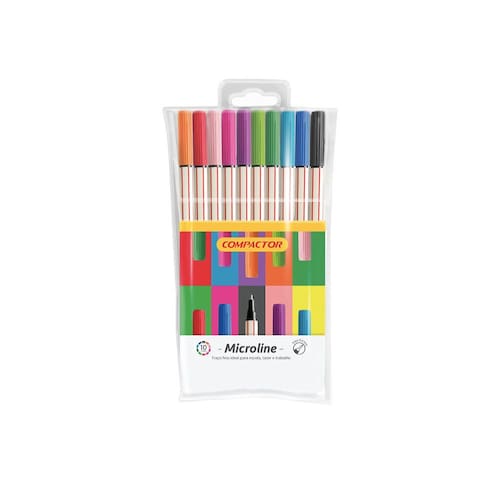 A Microline Compactor é a caneta de ponta fina ideal para a escola, o trabalho e para o lazer, pois sua ponta permite colorir detalhes, fazer rascunhos e sublinhar com precisão. O conjunto conta com 10 canetas que possuem sua carga de tinta, com o mesmo tamanho do corpo da caneta, garantindo muito mais durabilidade. Além disso, a tinta possui tecnologia cap-off, que não resseca mesmo se ficar destampada por algumas horas.