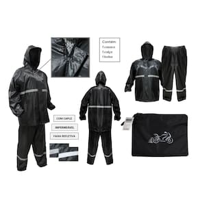 Conjunto Capa de Chuva Motoqueiro Impermeável com Gola e Faixa Refletiva – Masculino