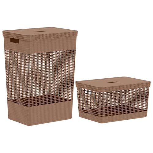 Conjunto de Cesto de Roupa e Cesto Organizador Grid Marrom Amêndoa 20L - Ou