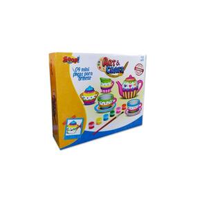 Contém: 01 - bule com tampa. 02 - xícaras. 02 - pires . 01 - leiteira. 01 - açucareiro com tampa. 01 - pincel. 06 - cores de tinta.