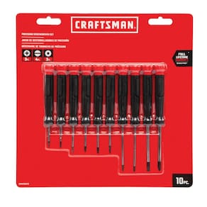 CRAFTSMAN Conjunto de chave de fenda, precisão, 10 peças (CMHT65070) - A ponta de óxido preto oferece maior durabilidade e aderência sem comprometer o ajuste da ponta. - A zona de velocidade oferece controle de rotação rápido para uma descida eficiente. - A zona de torque oferece textura e geometria de aderência adicionais para aplicações de torque pesado. - A zona tátil de precisão oferece controle de rotação para tarefas de precisão. - Garantia vitalícia total, consulte a seção "Garantia e suporte" abaixo para obter todos os detalhes