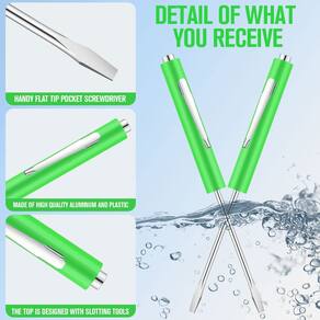 Características: A chave de fenda com clipe de bolso será um presente útil para mecânicos, eletricistas, técnicos de eletrônicos, montadores ou até mesmo para você mesmo. O conjunto de chaves de fenda de bolso é compacto, você pode prendê-lo no seu bolso para transporte conveniente, mais importante, o tamanho pequeno o torna mais flexível de usar, pode atender melhor às suas necessidades em casa e melhorar a eficiência do seu trabalho. Especificações: Material: plástico, aço, ímã principalmente Cor: verde. Tamanho: cerca de SL 3,2 mm para as partes da cabeça A embalagem inclui: 30 chaves de fenda. Observações: Medição manual, considere pequenos erros no tamanho. A cor pode existir uma pequena diferença devido a diferentes telas. - O que você receberá: este pacote vem com 30 peças de chaves de fenda magnéticas de bolso, suficiente em quantidade para uso doméstico e externo; você também pode compartilhar algumas com sua família, trazendo mais conveniência para sua vida diária - Tamanho portátil: a especificação da cabeça da chave de fenda de bolso com ímã mede cerca de SL 3,2 mm, o tamanho portátil torna a chave de fenda fácil e conveniente de transportar e usar, o que não ocupa muito espaço ao armazenar também - Use com confiança: a chave de fenda de bolso é feita principalmente de aço com alça de plástico, resistente e confiável de usar, não vai quebrar, deformar, pode atendê-lo por um longo tempo, você pode usar com confiança - Design prático: a chave de fenda magnética é anexada com um clipe de bolso na alça, você pode prendê-la em seu bolso ao sair, soltar suas mãos e atender às suas necessidades de uso; Com um ímã na cabeça superior, você pode segurar pequenos parafusos ou porcas para maior comodidade - Multifuncional: nossa chave de fenda com clipe de bolso tem várias funções e finalidades e é adequada para mecânicos, eletricistas, técnicos de eletrônicos e montadores; você pode usá-la para pequenos reparos e substituições, incluindo óculos, brinquedos, joias, teclado e mais itens que consistem em pequenos parafusos; Além disso, você também pode usá-la como uma ferramenta para colocar pequenas decorações dentro do carro