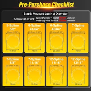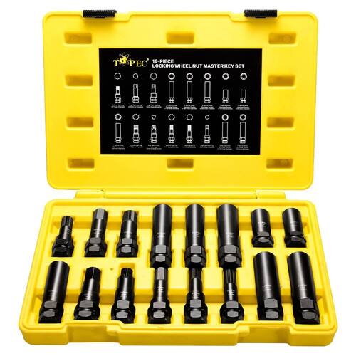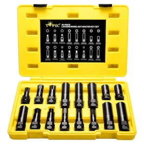 O conjunto de soquetes estriados Topec é a melhor ferramenta para remover porcas de pneu com facilidade. Projetado como uma ferramenta de remoção de porca de talão de alto desempenho e kit de remoção de trava de roda, funciona com estrias e porcas hexagonais internas. Este conjunto universal de chaves de trava de roda inclui chave de porca de 7 estrias e 6 soquetes de porca estriada, o que o torna um item essencial para proprietários de veículos. Porca interna compatível: 5, 6, 7, 12 estrias e porca externa do talão: 8, 9, estrela de 10 pontas, hexagonal canelado, hexagonal interno. Tamanhos de porcas compatíveis: M10x1.25, M12x1.25, M12x1.5, 1/2-20, M14x1.5, M14x2, 9/16-18. Não compatível com: 10 estrias, hexagonais externos, porcas de pino ou porcas grandes normalmente encontradas em caminhões e SUVs. Construído para resistência e durabilidade, este conjunto de soquetes de trava de roda inclui tamanhos SAE e métrico, proporcionando desempenho confiável para qualquer trabalho. Melhore a segurança do seu veículo com nossa substituição de chave de porca e remova ou substitua suas rodas com confiança com este conjunto de chaves de bloqueio de roda mestra. - Porca de suporte de compatibilidade: não é compatível com porcas de 10 estrias, hexagonais externas, pontas ou porcas maiores, como as usadas para caminhões e SUV. Tamanhos de porcas compatíveis: M10x1.25, M12x1.25, M12x1.5, 1/2-20, M14x1.5, M14x2, 9/16-18 - Lista de verificação pré-compra: siga as etapas abaixo para verificar se a chave universal de trava de roda é compatível com suas porcas de encaixe. Passo 1 - Verifique seu estilo de porcas. Passo 2 - Conte o número da estria. Passo 3 - Meça o diâmetro da estria. - 16 peças de soquete de porca: inclui 8 tamanhos de diâmetro interno estriado (12 estrias 13/40.6 cm, 11/40.6 cm, 7 estrias 3/10.2 cm, 5/20.3 cm, 11/40.6 cm, 6 estrias 41/64 '', 5 estrias 5/20.3 cm), 8 tamanhos de diâmetro externo (8 estrelas 5/20.3 cm) cm, 7/40 0,6 cm, 9 estrelas 1/5.1 cm, 10 estrelas 1/5.1 cm, hexagonais 12 mm, 15 mm, 9/40.6 cm, hexagonais canelados 12 mm) - CHAVES DE PORCA DURÁVEIS: estas chaves resistentes e extralongas têm uma parede fina feita de aço cromado molibdênio tratado termicamente e um acabamento de óxido preto garante longevidade e evita cortes e arranhões ao remover suas rodas e pneus. - Kit versátil de chaves de porca saliente: este conjunto de chaves de porca de roda de bloqueio permite que você encontre o ajuste perfeito enquanto protege suas rodas e porcas. Vem com peças padrão (SAE) e métricas (mm) que podem ser usadas em fixadores hexagonais estriados, estrelas, hexagonais e canelados. - Unidade hexagonal dupla: a unidade hexagonal dupla serve para chaves e soquetes de 13/40.6 cm e 7/20.3 cm para troca rápida. Use chaves inglesas para melhor durabilidade e para evitar danos causados por muita força (até torque de 200 NM)