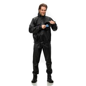 Conjunto de chuva para motociclista Roupa de chuva especial para os motociclistas Material 100 % impermeável Fácil de vestir Refletivos Jaqueta com bolso, com refletivo peito e costas e punhos com tiras aderentes. Fechamento frontal com zíper e tiras aderentes. Com gola. Espessura 0,30 Cor: preto Peso: 1.200 Medidas: Jaqueta Total 82 cm Tórax 132 cm Manga 80 cm Barra da cint. 132 cm Calça Cintura 114 cm Total 109 cm Entre Pernas 82 cm Gancho 71 cm Altura da Pessoa +/- 1,68 m Tamanho do produto dobrado (embalado) : 49 x 25 x 10 cm