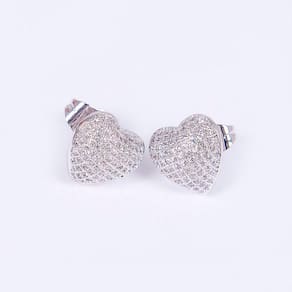 O Conjunto composto de colar em malha com pingente e brincos em formato de coração cravejado de microzircônias cristais, em ródio branco, delicado e luxuoso que lhe deixa em destaque em qualquer situação.