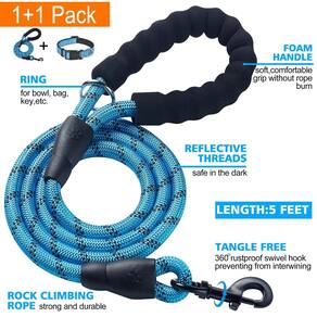 - Coleira bônus para cães: uma coleira de cachorro de 1,5 m está incluída. Possui alça de espuma confortável, corda de escalada forte e gancho que não embaraça