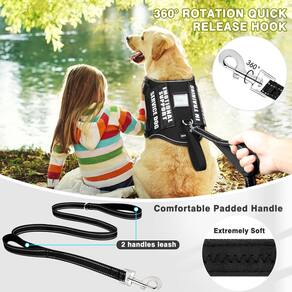 O pacote vem com um arnês para cães de serviço, uma coleira para cães de 1,5 m com 2 alças acolchoadas macias,