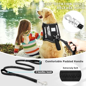 O pacote vem com um arnês para cães de serviço, uma coleira para cães de 1,5 m com 2 alças acolchoadas macias,