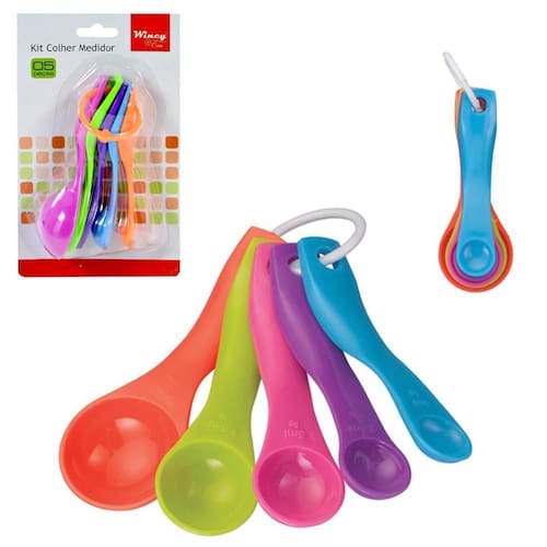 Informações adicionais: Ean: 7899755673934 Validade: indeterminada Capacidade: 1/2,5/5/7,5/15ml Tamanho aproximado da embalagem: a:17,5xl:10,5cm Peso aproximado: 50g Tipo de produto: conjunto de colher medidora com 5 pecas na cartela Cor: coloridas Composição: plastico Ean: 7636751387874