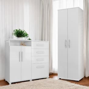 Conjunto de Cômoda e Multiuso Branco para Quarto
