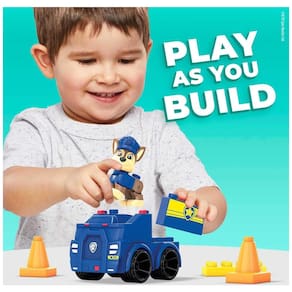 O conjunto de construção Chases Patrol Car é um brinquedo de construção projetado para crianças a partir dos 3 anos de idade. Ele vem com 1 figura articulável do Chase e 10 miniblocos de construção, incluindo peças especiais, que são duráveis e fáceis de montar. As crianças podem construir o carro patrulha do Chase e colocá lo dentro para se preparar para a ação. Além disso, os cones dos postes podem ser colocados ao redor da cidade para ajudar a salvar o dia. Quando a missão estiver concluída, os cones do poste podem ser empilhados na parte traseira do carro patrulha. Este conjunto de construção é compatível com todos os conjuntos de construção PAW Patrol, brinquedos de construção MEGA BLOKS e outras marcas.